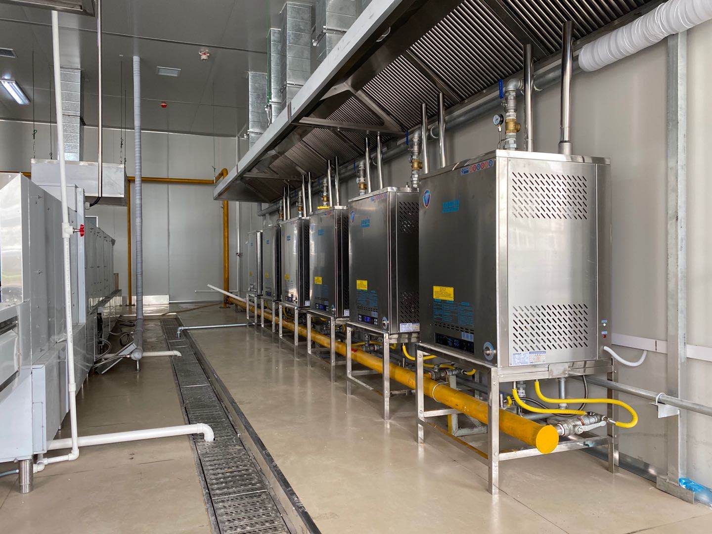 成武康橋中央廚房采用卓益150型高溫蒸汽機及雙膽熱水機為中央廚房提供高溫蒸汽和熱水。